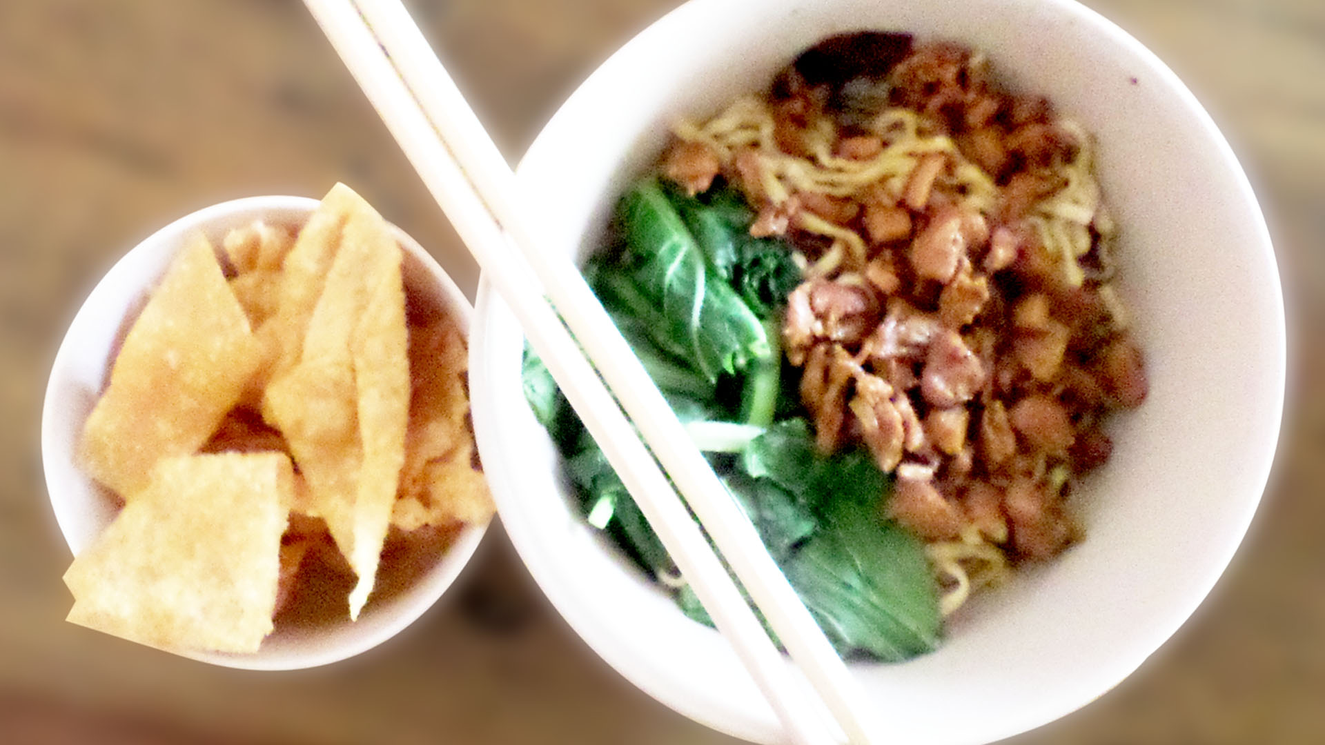 Mie Ayam Yang Disajikan Original Dengan Mengkombinasikan Bumbu Rempah, Tanpa Bahan Pengawet Dan Dilengkapi Dengan Pangsit Goreng.